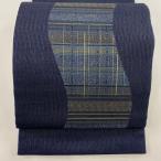 美品 袋帯 秀品 縞 箔 銀糸 紺色 お太鼓柄 正絹 中古