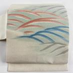 名古屋帯 秀品 芝 霞 綴れ ラメ箔 クリーム 正絹 中古