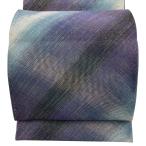 美品 袋帯 秀品 霞 幾何学模様 金銀糸 青紫 お太鼓柄 正絹 中古