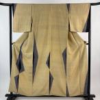 美品 付下げ 身丈164.5cm 裄丈64.5cm M 袷 幾何学模様 金糸 刺繍 薄黄土色 正絹 秀品 一つ紋 中古