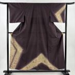 付下げ 身丈165cm 裄丈69cm L 袷 蝶 松梅 箔 刺繍 茶緑色 正絹 秀品 中古