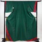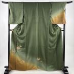 付下げ 身丈161cm 裄丈65.5cm M 袷 松竹梅 刺繍 絞り 緑 正絹 秀品 中古