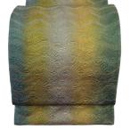 名古屋帯 秀品 幾何学 金彩 灰緑 正絹 中古