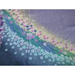 リサイクル着物 付下げ 中古 正絹 仕立て上がり 袷 友禅 青色系 草花文様 rr0106b