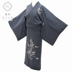 夏物 夏着物 付下げ 訪問着 着物 中古 正絹 植物文様 トンボ 地模様 市松に水玉 黒色 身丈162.5cm 裄67cm M きもの北條 A1192-15