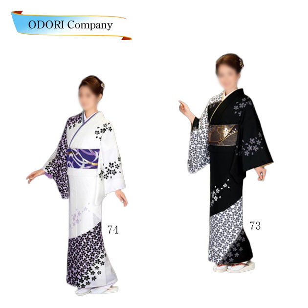 踊り 着物 付下げ 洗える 附下 黒 白 銀箔桜 袷 仕立て上がり 32-10