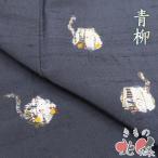 特選 付下げ 付け下げ 訪問着 着物 中古 正絹 紬地 袷 カジュアル 青柳 落款 猫の図 褐返色 身丈161cm 裄69cm M きもの北條 A1306-4