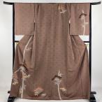付下げ 身丈171cm 裄丈68cm L 袷 千總 落款あり 松 竹 金糸 金彩 小豆色 正絹 逸品 一つ紋 中古