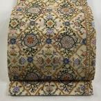 袋帯 美品 逸品 華文 草花 相良刺繍 金糸 ベージュ 六通 正絹 中古