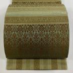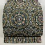 袋帯 美品 逸品 華文 金糸 刺繍 深緑 六通 正絹 中古