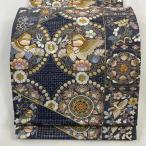 袋帯 美品 逸品 華文 花鳥 刺繍 金糸 紺色 六通 正絹 中古