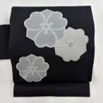 名古屋帯 優品 弔事向き 色喪帯 夏帯 絽 花 黒 正絹 中古