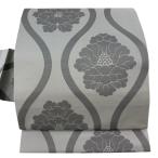 名古屋帯 優品 弔事向き 色喪帯 草花 立涌 灰色 正絹 中古