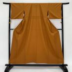色無地 単衣 洗える着物 紋入り 裄64.2cm 身丈154cm ポリエステル 茶色 M サイズ 4388