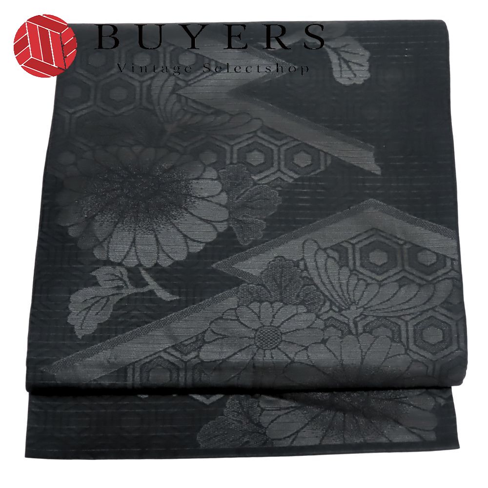【20%OFF!!楽天スーパーSALE!!】【中古】 名古屋帯 九寸 正絹(金銀糸除く) ブラック 開き仕立て 喪服用 和装 呉服 和服 きもの レディース メンズ