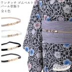 帯締め パール ワンタッチ ゴムベルト 帯飾り 全4色 白 黒 茶 ホワイト ブラック ダークブラウン ベージュ 浴衣 夏物 洋装 着物