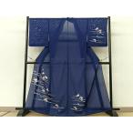 夏物 着物 未使用 訪問着 正絹 紗紬 単衣 十日町 縦節紬 紺 カジュアル 新古品 仕立て上がり 身丈163 裄丈64.5 Mサイズ みやがわ sb15675