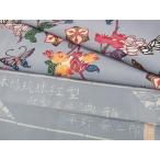 \20%OFFクーポン+P2倍/ 【中古】 リサイクル 名古屋帯 正絹 九寸 美品 仕立て上がり グレー色系 縞 菱文様 首里織 お太鼓柄 証紙あり 手織り uu1003b