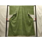 小紋 単衣 洗える着物 裄65cm 身丈155cm 花柄 お洒落着 普段着 ポリエステル 緑 美品 M サイズ 4596