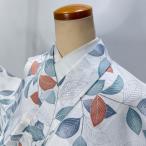 小紋 単衣 洗える着物 裄66.5cm 身丈156cm 花柄 お洒落着 普段着 ポリエステル 白 美品 M サイズ 4590