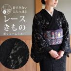 [ レース きもの ] 洗える レース着物 ボリューム ミルパ 黒 仕立て上がり 着物 小紋 単衣 夏 盛夏 花 フラワー シンプル 上品
