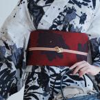 帯 小袋帯 正絹 半幅帯 utatane 博多織 長尺 リバーシブル 牡丹 レッド×ブラック 日本製 本場筑前博多織 博多帯 紋小巾袋帯 シルク 着物 帯単品 証紙付き