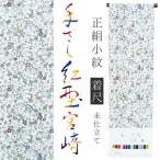 着物 小紋 絹 反物 日本製 カジュアル 花 モダン 白 ブルー