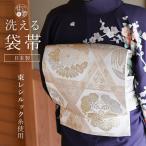 東レシルック糸使用 洗える 袋帯 籠目に花丸紋 オフホワイト×ゴールド 日本製 金色 ベージュ 結婚式 フォーマル 着物 振袖 訪問着 春 秋 冬 レディース ym501