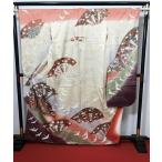 中古40%OFF/中古 Mサイズ 正絹 振袖 東雲色地に御所車模様 身丈長め