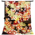 15%クーポンあり 振袖 友禅 お仕立て付き 十日町有名染匠 濃い焦げ茶 熨斗柄 古典柄 着物 未仕立て 正絹 販売 反物 成人式 f-397