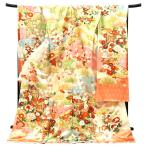 15%分クーポンあり 振袖 友禅 クリーム色 仕立て付き 十日町有名染匠 新品 購入 販売 御所車 花 古典 正絹 フォーマル 着物 未仕立て 成人式 卒業式 絹 f-746
