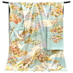 振袖 友禅 水色 仕立て付き 十日町有名染匠 新品 購入 販売 貝桶 松竹梅 四季花 菊 桜 牡丹 古典柄 正絹 着物 未仕立て 成人式 絹 f-764