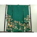 ≪15%OFFクーポンあり≫振袖 緑 仕立て付き 十日町有名染匠 新品 購入 販売 古典柄 牡丹 御所車 幔幕 霞 雲 四季花 正絹 友禅 フォーマル 着物 未仕立て 仕立て込み 礼装 成人式 卒業式 絹 f-731