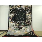平和屋本店■極上 お引きずり 引き振袖 舞妓 芸妓 衣装 友禅 駒刺繍 宝尽くし飛鶴文 黒地 暈し染め 金彩 鬼しぼ縮緬 逸品 DZAA5579kh5