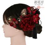 髪飾り 成人式 つまみ細工 赤 ゴールド 振袖 袴 花 黒 ピンク ちりめん 組紐 房 パールビーズ 大きい 小さい 2点セット着物 和 No.9-5356