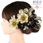 髪飾り 成人式 水引 つまみ細工 ゴールド 振袖 袴 花 白 黒 ちりめん 藤下がり ビーズ ラメ 大きい 小さい 2点セット 着物 和装 No.9-5601