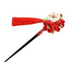 髪飾り 成人式 つまみ細工 赤 振袖 袴 花 一本差し 白 ちりめん 房 かんざし シンプル おしゃれ かわいい 人気 和柄 和装 着物 No.12-0010