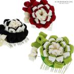 (Prices down3)成人式 髪飾り つまみ細工 お花 髪飾り「黒色 赤色 黄緑色」 お花髪飾り コームwk★25%OFF