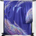 振袖 身丈166.5cm 裄丈67.5cm L 袷 辻が花 流水 金通し 金彩 青紫 正絹 名品 中古