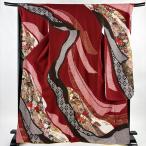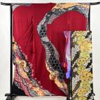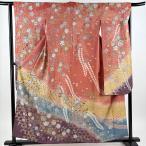 振袖 身丈155.5cm 裄丈63.5cm S 袷 落款あり 辻が花 銀通し 金糸 茜色 正絹 名品 中古