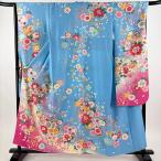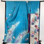 振袖 身丈170cm 裄丈68cm L 袷 袋帯フルセット 桜 地紋 箔 金彩 水色 正絹 秀品 中古