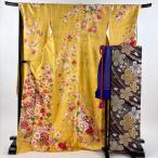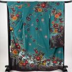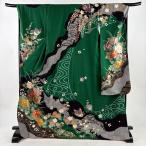 振袖 身丈167cm 裄丈66.5cm M 袷 花鳥 松 ぼかし 緑 正絹 名品 中古
