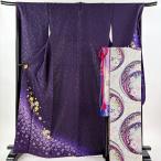 振袖 身丈170cm 裄丈67cm M 袷 辻が花 金彩 染め分け 紫 正絹 名品 中古