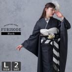 振袖 モノトーン 千鳥格子柄 着物・袋帯 2点セット Lサイズ ブラック nt-20b