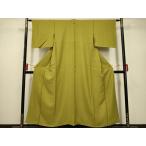 夏着物 色無地 袷 広衿 ポリエステル 黄緑色 紋無し 芝草地紋 仕立て上がり 身丈155cm