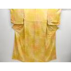 平和屋着物■上質な色無地 紋意匠 鶸色 正絹 逸品 AABC5572sx