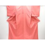 平和屋着物■上質な色無地 鹿の子扇子地紋 銀朱色 正絹 逸品 AABE1159fw