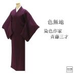 色無地 正絹 染色作家 斉藤三才 身丈160cm 裄丈64cm 縮緬 花筏 中古 リサイクル 着物 a4159