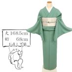 長尺トールサイズ グリーン 色無地 袷 着物 背紋有 略礼装に 和装 Lサイズ 身丈168.5cm 裄丈68cm 11SH7 中古 リサイクル