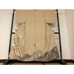 着物 色留袖 縫い紋 揚羽の蝶 薄茶 波 花 扇面 菱 ゴールド 京友禅 /B11